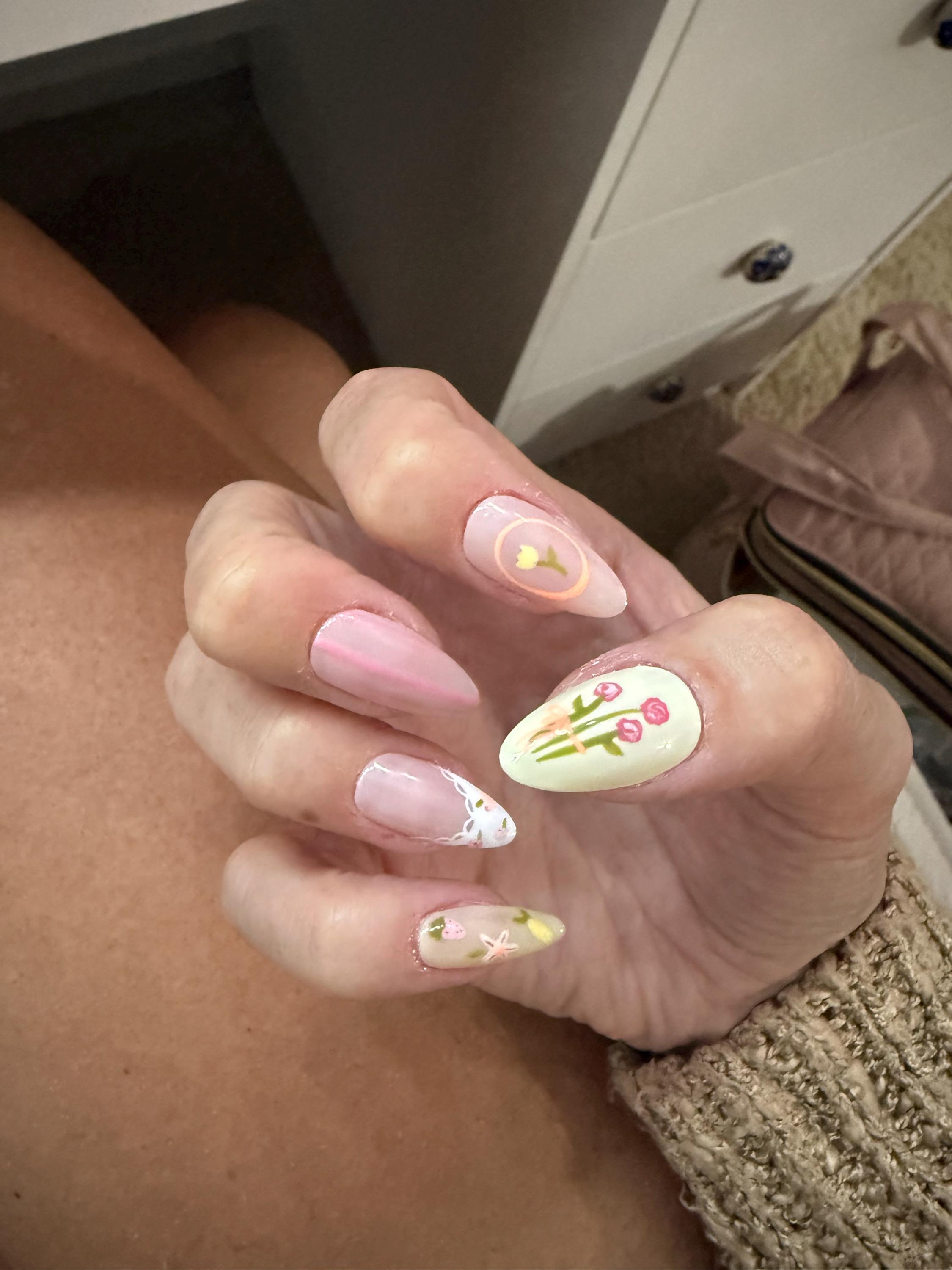 Tier 2 | 3-4 colours, small hand painted designs (eg. flowers/stars), french tip