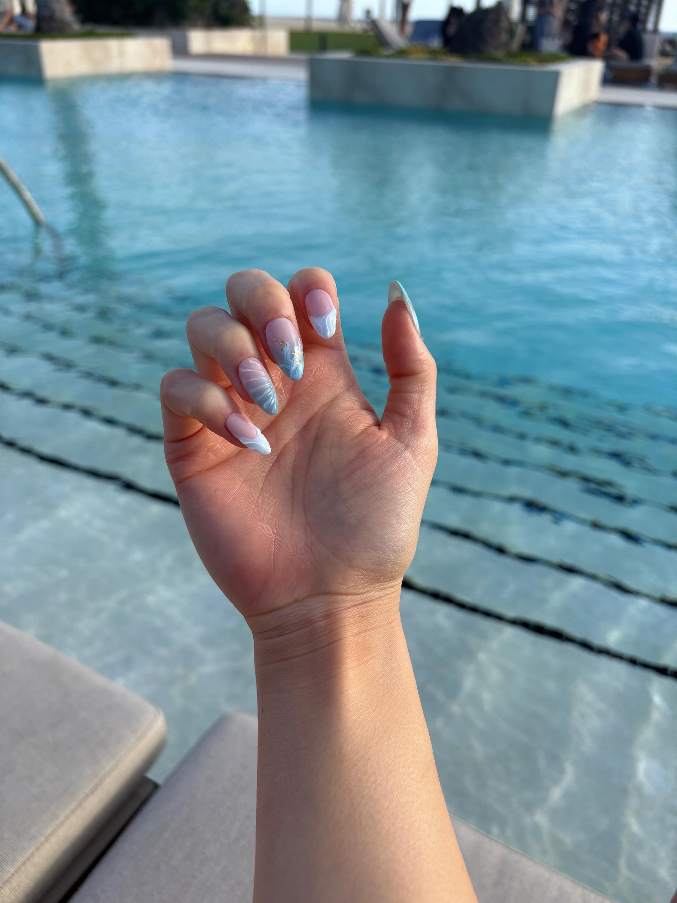 This super cute shape is both very short and tapered, which means it ends sooner on the nail bed. Because of this, sizing can be a bit trickier—especially if your natural nails are longer or wider.